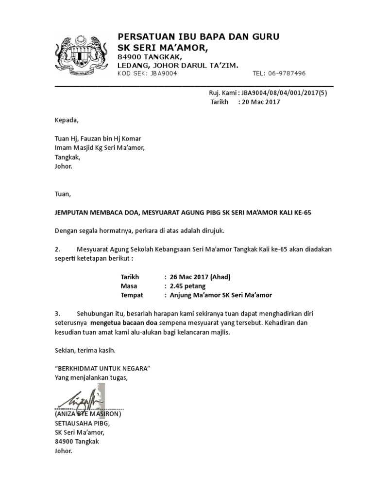 Contoh Surat Jemputan Ke Majlis - Sebagai setiausaha pibg pelbagai surat perlu dibuat sempena mesyuarat agung pibg yang akan diadakan pada hujung bulan ni cn sukacita berkongsi dengan anda contoh surat jemputan sebagai perasmi untuk mesyuarat agung tersebut. March 17 2017 at 1124 PM. Majlis doa aariz niyaz bin azri 28 april 2018.